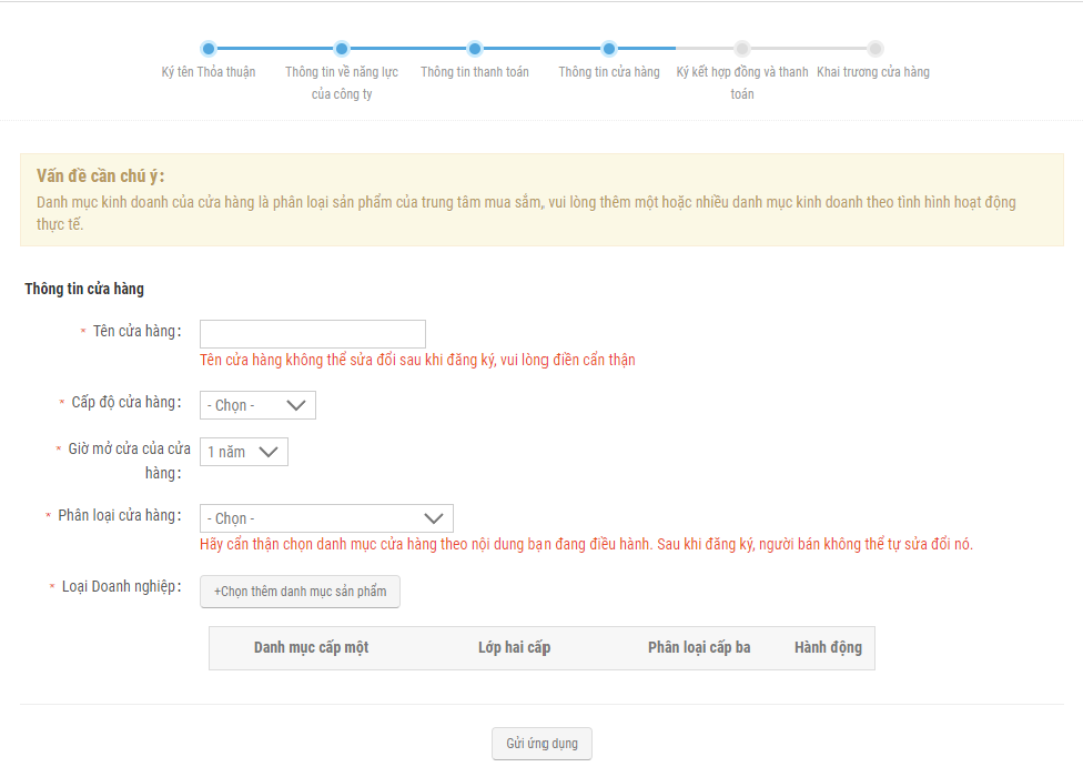 5.1.3: Điền chi tiết Thông tin cửa hàng