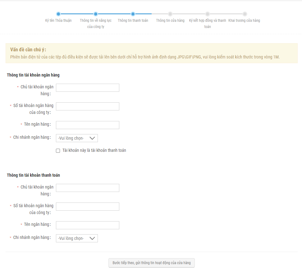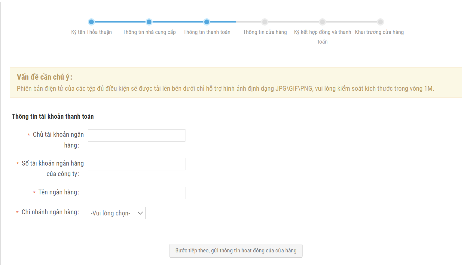 5.1.2: Điền thông tin thanh toán của cửa hàng