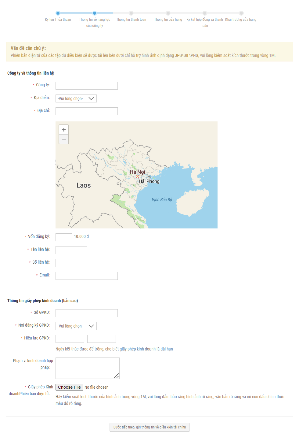 5.2.1: Điền đầy đủ thông tin của doanh nghiệp và giấy phép kinh doanh