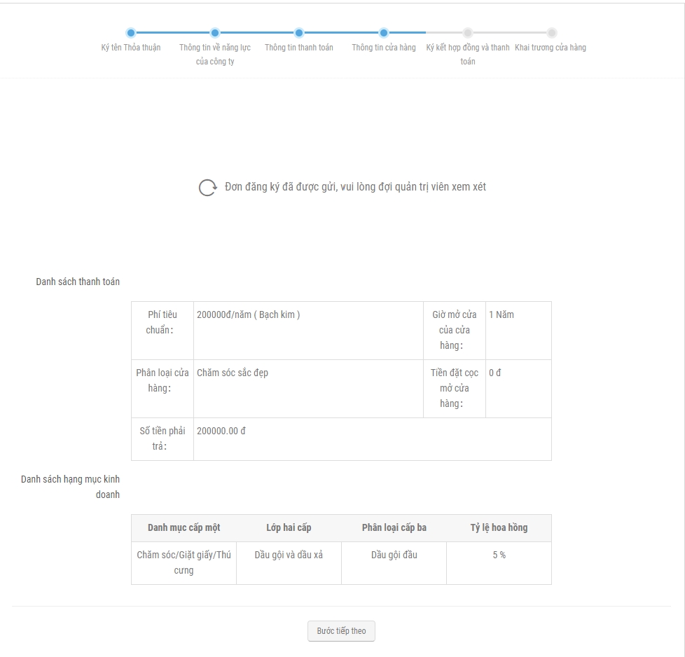5.1.4: Hoàn tất điền thông tin, chờ đợi Postmart kiểm tra và duyệt đơn xin mở cửa hàng trên sàn