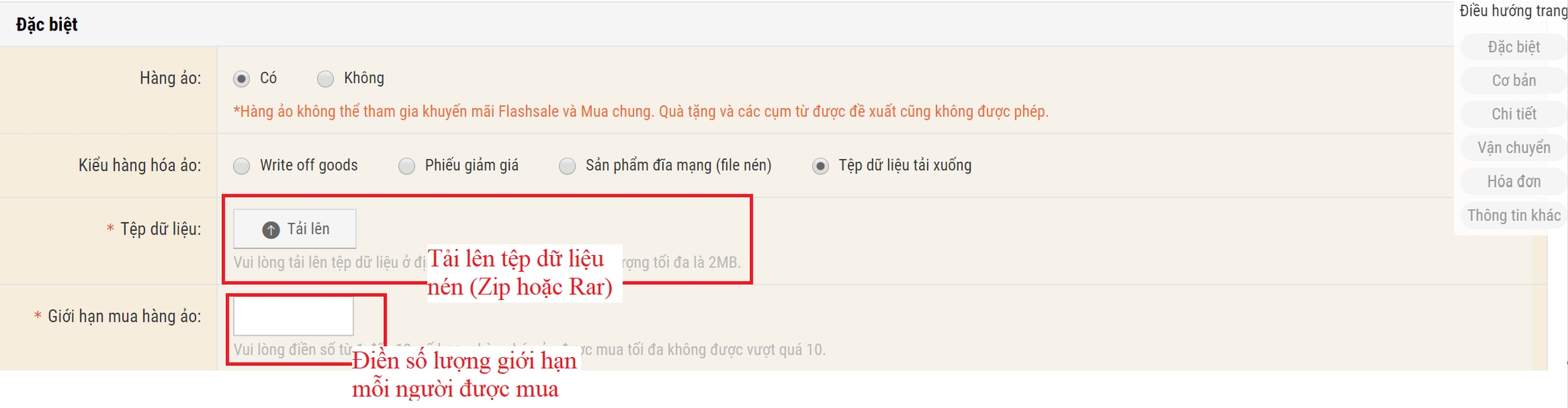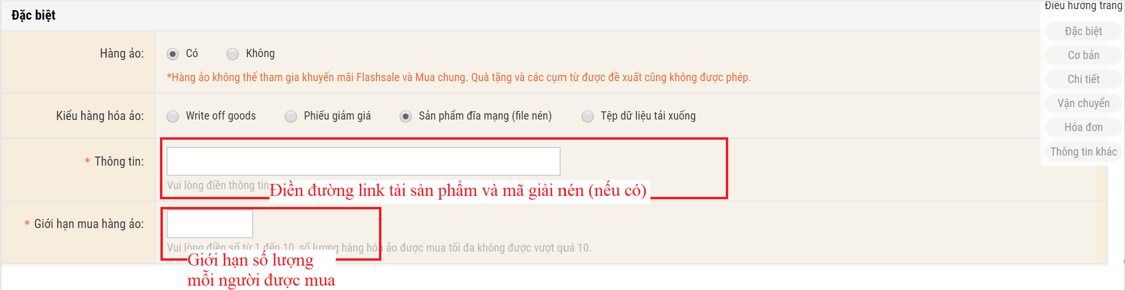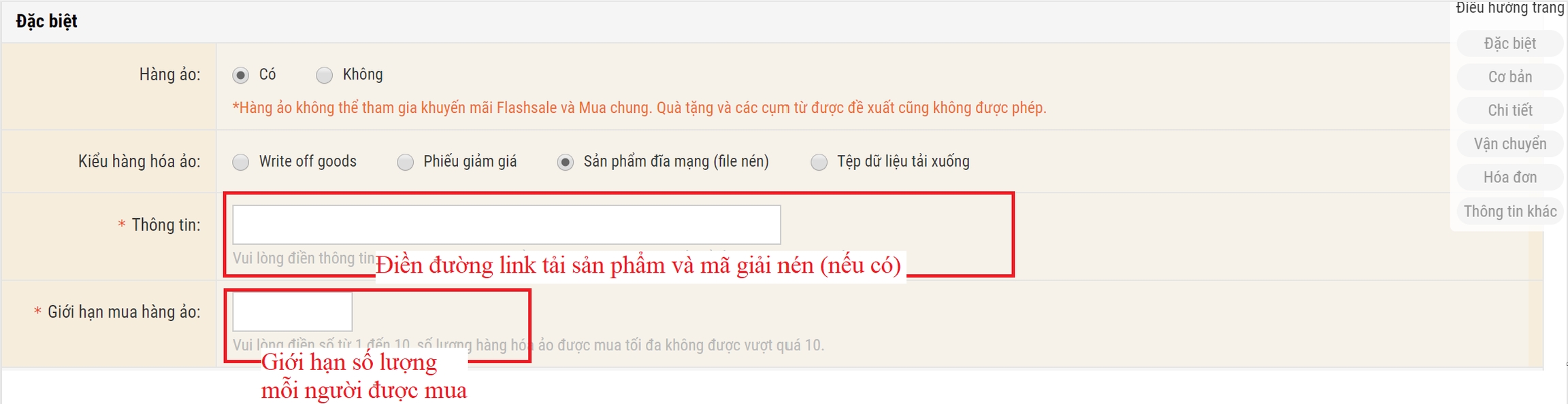 Chức năng này giúp nhà cung cấp tạo các sản phẩm số ví dụ như Mã giảm giá, các Tệp dữ liệu, Phiếu voucher, Sách online,....