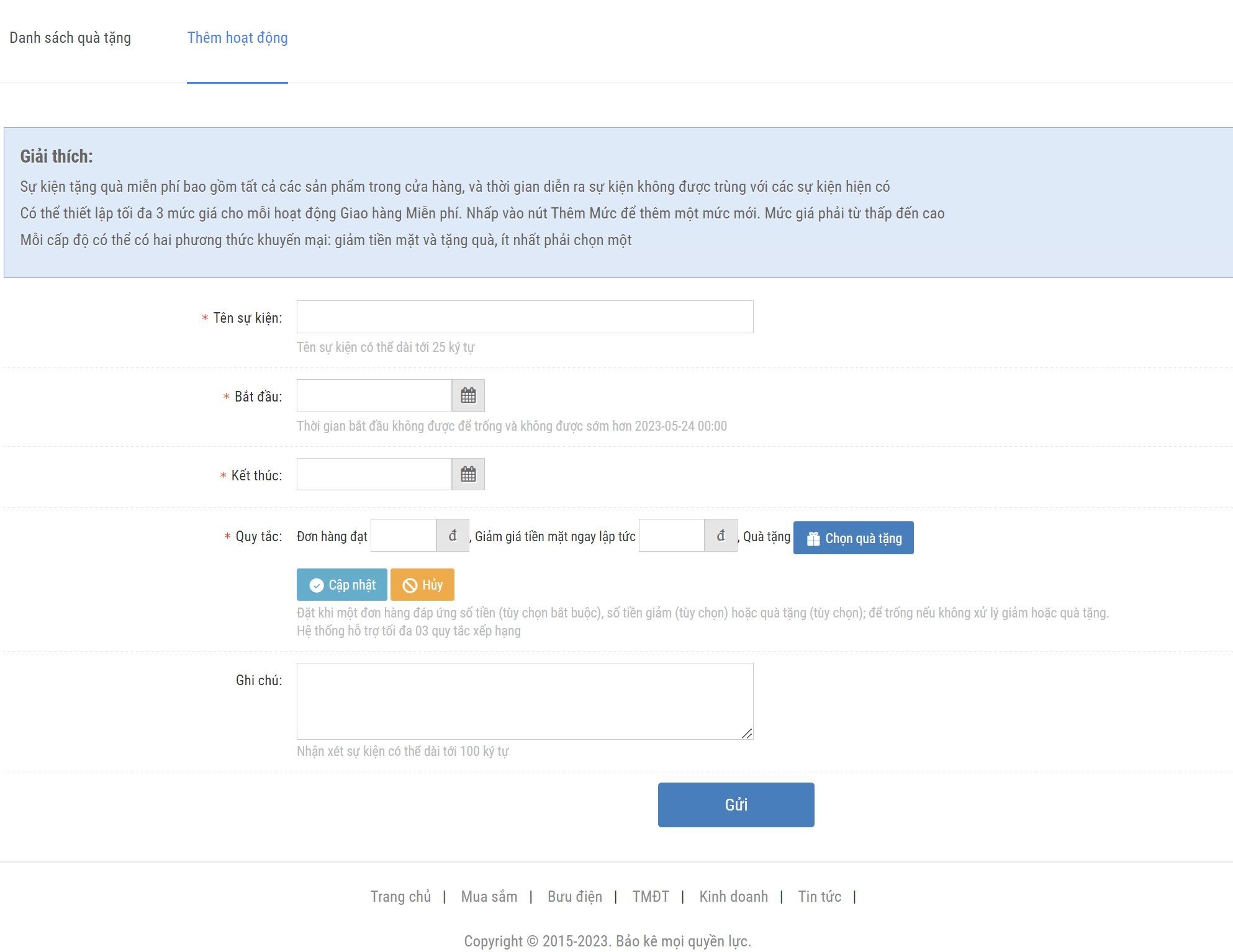 Chức năng giúp người dùng tạo các sự kiện tặng quà dành cho khách hàng