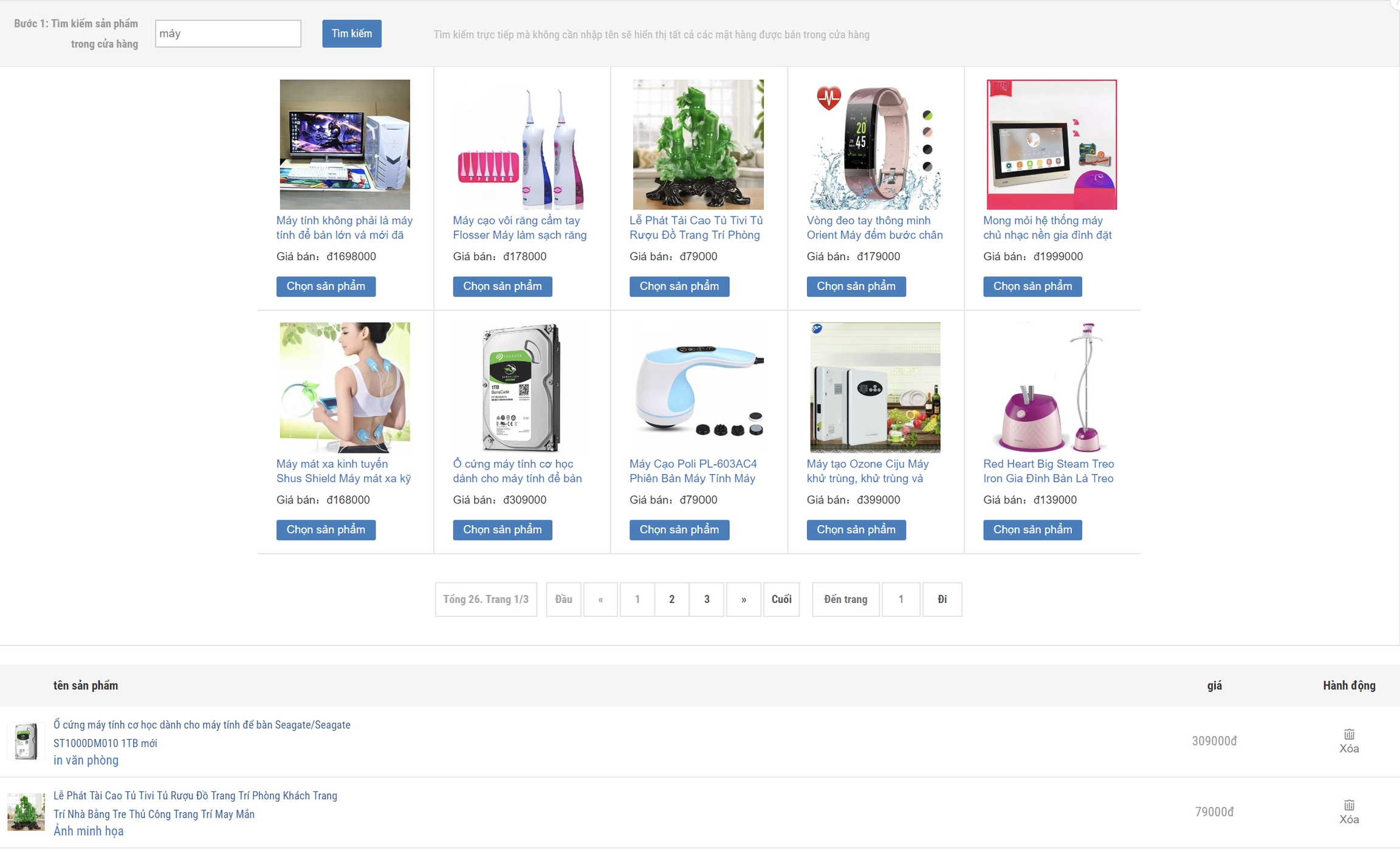 Thêm sản phẩm đề xuất: Tìm kiếm và chọn các sản phẩm cần đề xuất (Tối đa 10 sản phẩm)