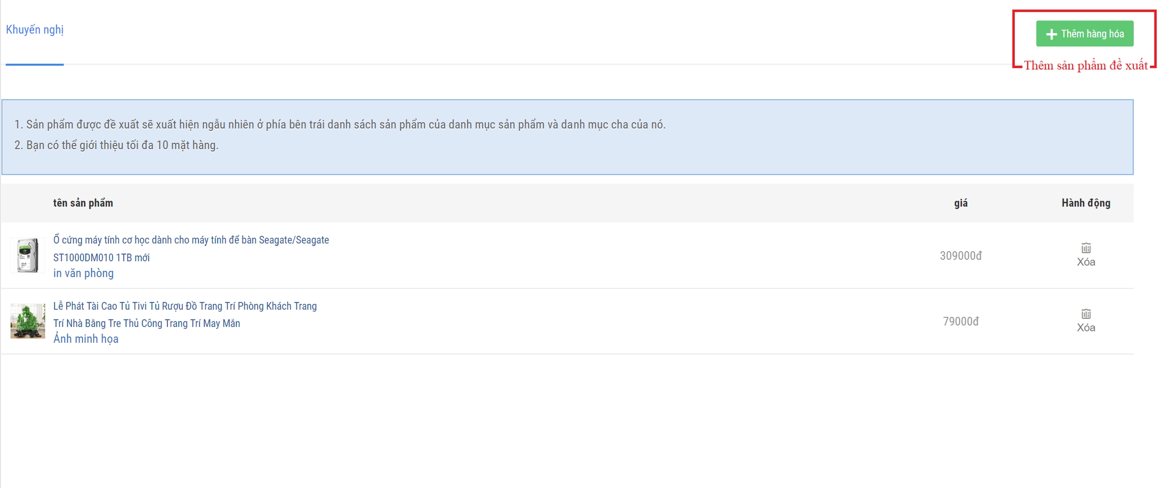Chi có thể đề xuất tối đa 10 sản phẩm